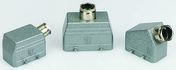 Heavy-duty power connector hoods are available in both high and low construction types. The cable entry to the connector hood comes in via a cable gland either at the top or side. The robust hoods are available in metals including die-cast aluminium and tough thermoplastic.