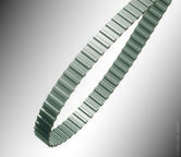 Synchronous belts - also known as timing belts, have a toothed profile and can be used as an alternative to chains and gears. They overcome belt slippage with teeth that engage with corresponding grooves in the pulley or sprocket boosting drive efficiency above a V-belt. They're used in high-powered transmission applications, such as water pumps, fuel injection pumps and camshafts. They are thin and flexible making them ideal for use where high speed or small pulleys are required. They are less noisy than chain drives and energy-efficient through the life of the belt.