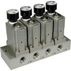 - Regulators - these are air pressure reducing valves used for regulation of pressure and flow, responsible for maintaining a consistent output pressure regardless of the input pressure or flow rate.