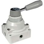 Manual control valves allow for the manual control of airflow around a pneumatic air system. They can be used to control the flow of air in one direction but not another, in a pressure relief situation where pressure needs to be dissipated outside of the system or to control the amount of air that is passed around the airflow system.Manual control valves are available in several control methods from knobs, levers to foot pedals. Control valves are modular, meaning that multiple valves can be used in conjunction with each other to create various combinations of flow.